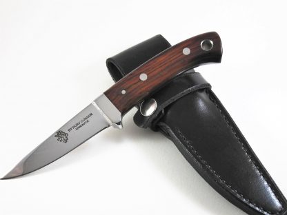 Fisher Knife Cocobolo Handle hand stitched leather sheath wet formed. Other handle materials available