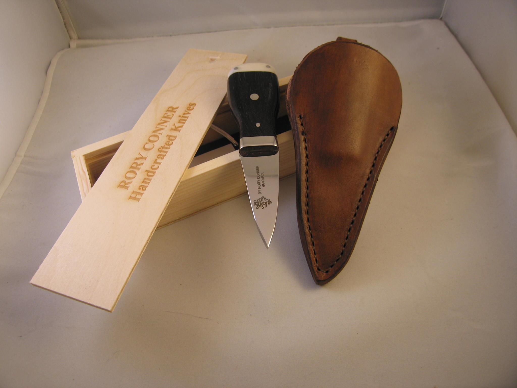 Stout Oyster Knife handle of 1000 year old Irish Bog Oak with cream Coloured Corian stainless steel fittings to resemble a traditional Irish Pint of Guinness all in a nice wooden box.